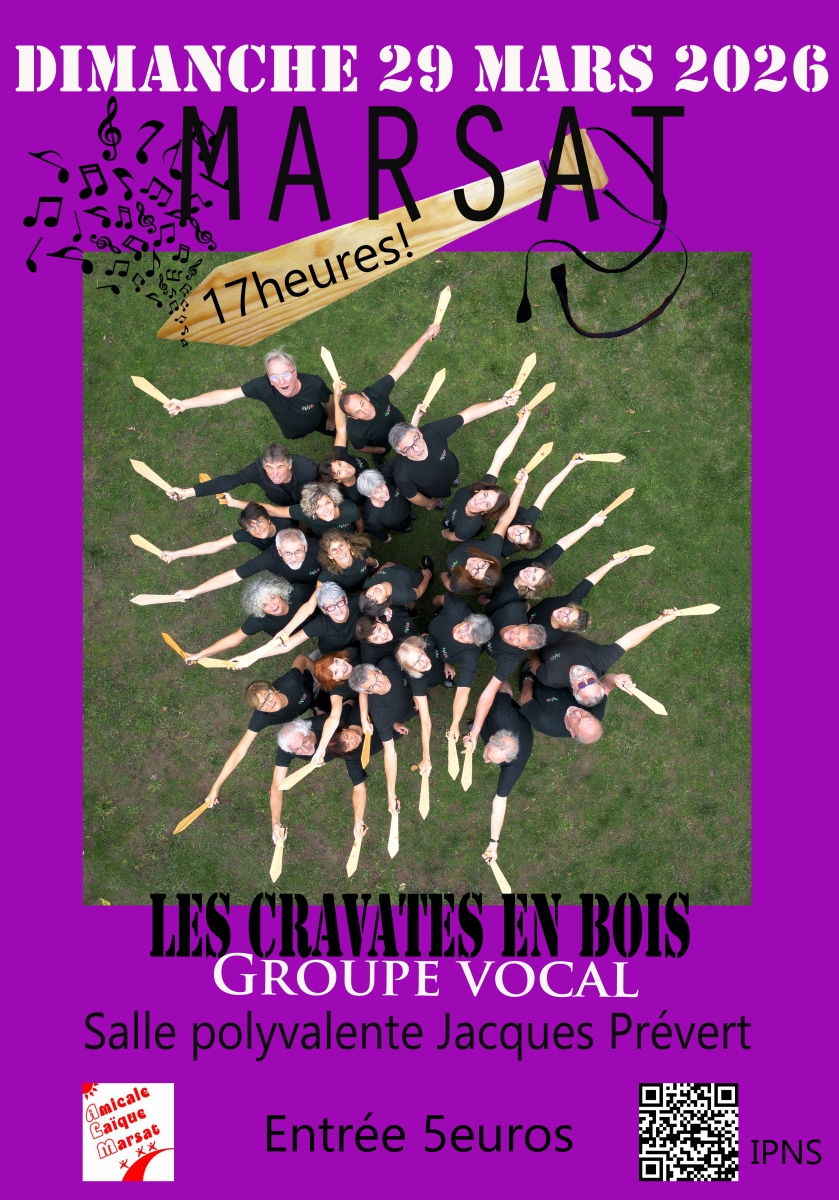 Seychalles le 22/11/2025 (18h) ; Chamalières le 23/11/2025 (16h) : Saint Hilaire La Croix le 11/10/2025 ; Langeac (43 Le Café Grenouille) 08/07/2025 ; Chanteuge (43) le 07/07/2025 ; ; Saint-Privat du Dragon (43) le 05/07/25 ; Veyre–Monton (Espace Harmonia) le 21/06/2025 ; ; aint-Saturnin (La Grange de Mai) le 17/05/2025 ; Clermont-Ferrand (Maison du Peuple) le 29/03/2025 ; Aubière (Carré des Arts) le 08/02/2025 ; Billom (Salle du Moulin de l’Etang) le 16/11/2024 ; Chabreloche (Salle des fêtes) le 12/10/2024 ; Abrest (Salle aux foires) le 09/07/2024 ; Vichy (Kiosque à musique) le 07/07/2024 ; Le Mayet-de-Montagne (Salle polyvalente) le 06/07/2024 ; Clermont-Ferrand (La Coupole) le 21/06/2024 ; Issoire (Auditorium de l’école de musique) le 04/05/2024 ; Landogne (Salle polyvalente ) le 06/04/2025 ; Aubière (Petit Cosec) le 09/03/2024 ; Ceyrat (La Griffe) le 10/02/2024 ; Mozac (Salle Arlequin) le 15/12/2023 ; Veyre-Monton (Salle Harmonia) le 24/11/2023 ; Saint-Symphorien (Chambon le Château (48)) le 07/10/2023 ; Arlanc (Salle multi-activités) le 11/07/2023 ; Ambert (Train Ambert / La Chaise-Dieu) le 11/07/2023 ; Chaise-Dieu (la) (Brocante dans la rue) le 09/07/2023 ; Craponne-sur-Arzon (La Genette) le 08/07/2023 ; Clermont-Ferrand (Hôtel du département) le 13/05/2023 ; La Sauvetat (Espace culturel) le 25/02/2023 ; Aubière (Petit COSEC) le 21/01/2023 ; Aubière (Carré des Arts) le 09/12/2022 ; Chamberet (Salle des Fêtes) le 19/11/2022 ; Courpière (Salle Jean Couzon) le 22/10/2022 ; Aubière (Petit COSEC) le 01/10/2022 ; Le Rouget-Pers (Ferme de Viescamp (plein air)) le 12/07/2022 ; Aurillac (Centre social du Cap Blanc) le 11/07/2022 ; Marcolès (Devant l’église) le 09/07/2022 ; Romagnat (Salle Jean Raynoird) le 14/11/2021 ; Ceyrat (Espace Culture et Congrès) le 15/02/2020 ; Aubière (Petit COSEC) le 08/02/2020 ; Aubière (Petit COSEC) le 07/02/2020 ; Clermont-Ferrand (Bar Le Gavroche) le 28/09/2019 ; Sauxillanges (Jardin de la Chapelle) le 28/09/2019 ; Bournazel (Chez Piccolo (chapiteau)) le 11/07/2019 ; Vabre Tizac (Salle des fêtes Les Lisières) le 10/07/2019 ; Saint-Salvadou (Salle des Fêtes) le 09/07/2019 ; Monteils (Salle des Oeuvres) le 08/07/2019 ; Clermont-Ferrand (Bar Le Gavroche) le 21/06/2019 ; Condat-en-Combraille (Salle des Fêtes) le 30/03/2019 ; Aubière (Petit COSEC) le 23/03/2019 ; Riom (Le Réxy) le 26/01/2019 ; Chamberet (Salle des Fêtes) le 06/10/2018 ; Clermont-Ferrand (Cour des Trois Coquins) le 05/10/2018 ; Carmeaux (Marché de nuit) le 11/07/2018 ; Briatexte (Espace Culture et Loisirs) le 10/07/2018 ; Labastide de Levis (Salle polyvalente) le 08/07/2018 ; Riom (Cour de l’hôtel de ville) le 21/06/2018 ; Clermont-Ferrand (Salle Robert Thomazet) le 02/06/2018 ; Condat-en-Combraille (Salle des Fêtes) le 07/04/2018 ; Thiers (Espace Thiers) le 03/03/2018 ; Aubière (Petit COSEC) le 18/11/2017 ; Pérignat-lès-Sarliève (L’Affiche) le 06/10/2017 ; Saint-Agne (Salle des Fêtes) le 11/07/2017 ; Cadouin (Place de l’abbaye) le 10/07/2017 ; Lalinde (Salle Jacques Brel) le 08/07/2017 ; Aubière (Petit COSEC) le 20/05/2017 ;Clermont-Ferrand (Hôtel place Dellile) le 26/01/2017 ; Messeix (Salle des Fêtes) le 01/10/2016 ; Saint-Genès-Champanelle (Salle des Fêtes) le 24/09/2016 ; Donzenac (Salle des Fêtes) le 10/07/2016 ; Lacelle (Salle polyvalente) le 09/07/2016 ; Allassac (Garavet Rives de Vézère) le 07/07/2016 ; Blanzat (Dans les rues (brocante)) le 29/05/2016 ; Aubière (Petit COSEC) le 30/04/2016 ; Pontaumur (Salle des Fêtes) le 02/04/2016 ; Ceyrat (Espace Culture et Congrès) le 18/03/2016 ; Cournon (La Coloc) le 06/02/2016 ; Chanonat (Salle des Loisirs) le 16/01/2016 ; Mezel (Salle du temps libre) le 02/10/2015 ; Mirefleurs (Espace Culturel Salle polyvalente) le 29/09/2015 ; Saint-Germain-Lembron (Salle polyvalente) le 19/09/2015 ; Aurillac (Auditorium de l’école de musique) le 07/07/2015 ; Vic-sur-Cère (Centre Culturel de Carlades) le 05/07/2015 ; Murat (La Halle) le 04/07/2015 ; Aubière (Salle des Fêtes) le 28/11/2014 ; Saint-Germain-Lembron (Salle Polyvalente) le 22/11/2014 ; La Roche-Blanche (Maison des Loisirs et du Tourisme) le 21/11/2014 ; Bourg-Lastic (Salle des Fêtes) le 08/11/2014 ; Les Martres de Veyre (Auditorium de l’école de musique) le 28/09/2014 ; Odenas (Salle des Fêtes) le 08/07/2014 ; Corcelles-en-Beaujolais (Salle des Fêtes) le 07/07/2014 ; Lancié (Espace Capella) le 05/07/2014 ; Chamalières (Salle Carrefour Europe) le 12/06/2014 ; Aubière (Petit COSEC) le 24/05/2014 ; Billom (Salle du Moulin de l’Etang) le 29/03/2014 ; Aubière (Petit COSEC) le 22/02/2014 ; Besse et Saint-Anastaise (Salle des Fêtes) le 16/02/2014 ; Pontaumur (Salle des Fêtes) le 08/02/2014 ; Saint-Georges-de-Reneins (Foyer Municipal) le 12/10/2013 ; Saint-Georges-de-Reneins (Foyer Municipal) le 12/10/2013 ; Pérignat-lès-Sarliève (L’Affiche) le 27/09/2013 ; Maclas (Les Camiers / Veranne) le 09/07/2013 ; Boulieu-lès-Annonay (Les Halles du Marché) le 07/07/2013 ; Saint-Désirat (Salle communale) le 06/07/2013 ; Orcines (Foyer Rural) le 08/06/2013 ; Châteauneuf les Bains (Salle des Fêtes) le 24/05/2013 ; Orcet (Salle des Fêtes) le 16/03/2013 ; Ceyrat (Espace Culture et Congrès) le 16/02/2013 ; Aubière (Petit COSEC) le 26/01/2013 ; Riom (Salle Dumoulin) le 11/01/2013 ; Le Crest (?) le 17/11/2012 ; Vitrac (?) le 20/10/2012 ; La Sauvetat (?) le 06/10/2012 ; Blanzat (La Muscade) le 19/09/2012 ; Myans (?) le 10/07/2012 ; La Rochette (Salle Polyvalente) le 08/07/2012 ; Theys (Salle Belledonne) le 07/07/2012 ; Saint-Pierre d’Allevard (en extérieur) le 06/07/2012 ; Saint-Saturnin (Place du village) le 23/06/2012 ; Mezel (Salle du temps libre) le 12/05/2012 ; Chamalières (I.U.F.M.) le 05/04/2012 ; Thiers (Espace Thiers) le 31/03/2012 ; Besse et Saint-Anastaise (cinéma ?) le 09/03/2012 ; Saint-Genès-Champanelle (Maison des Associations) le 03/03/2012 ; Aubière (Petit COSEC) le 10/12/2011 ; Vallière (Salle polyvalente) le 15